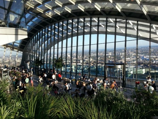 워키토키 빌딩이라는 별명을 가지고 있는, 런던에서 꽤 높은 편에 속하는 멋진 빌딩의 옥상에 인공가든과 바를 꾸며놓은 이 곳은,
