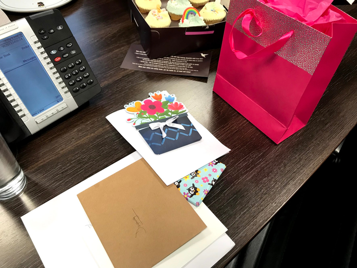 회의실 테이블엔 정말 어마무시하게 큰 케이크와 친구들의 카드와 선물들이 놓여있고, 다 같이 둥글게모여 박수를 쳐주며 이직을 축하해주었다.