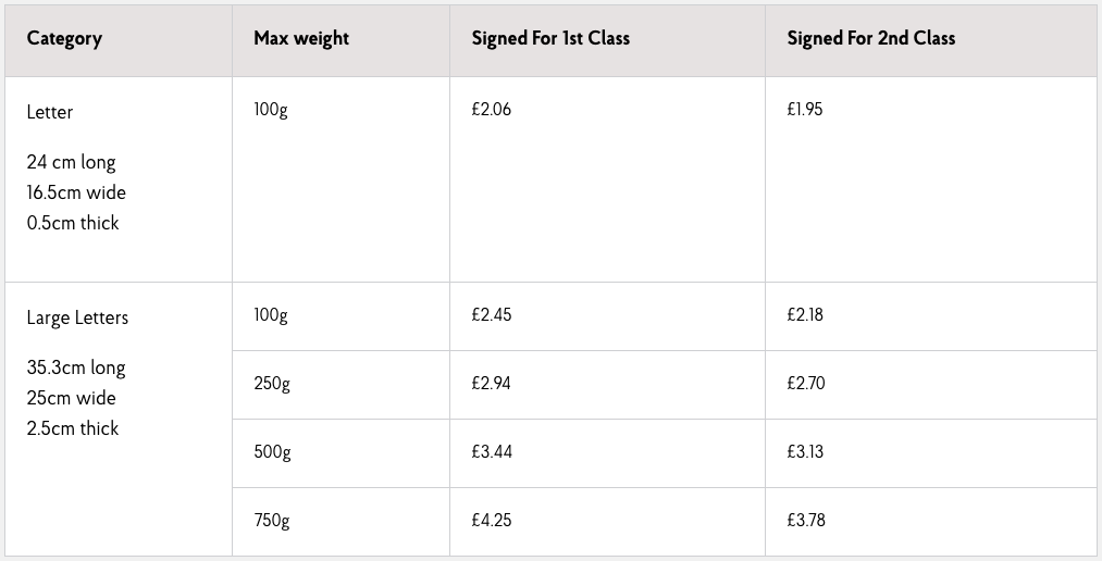 *대형편지 (Large Letter)에 Signed for 우표를 붙일 경우 가격