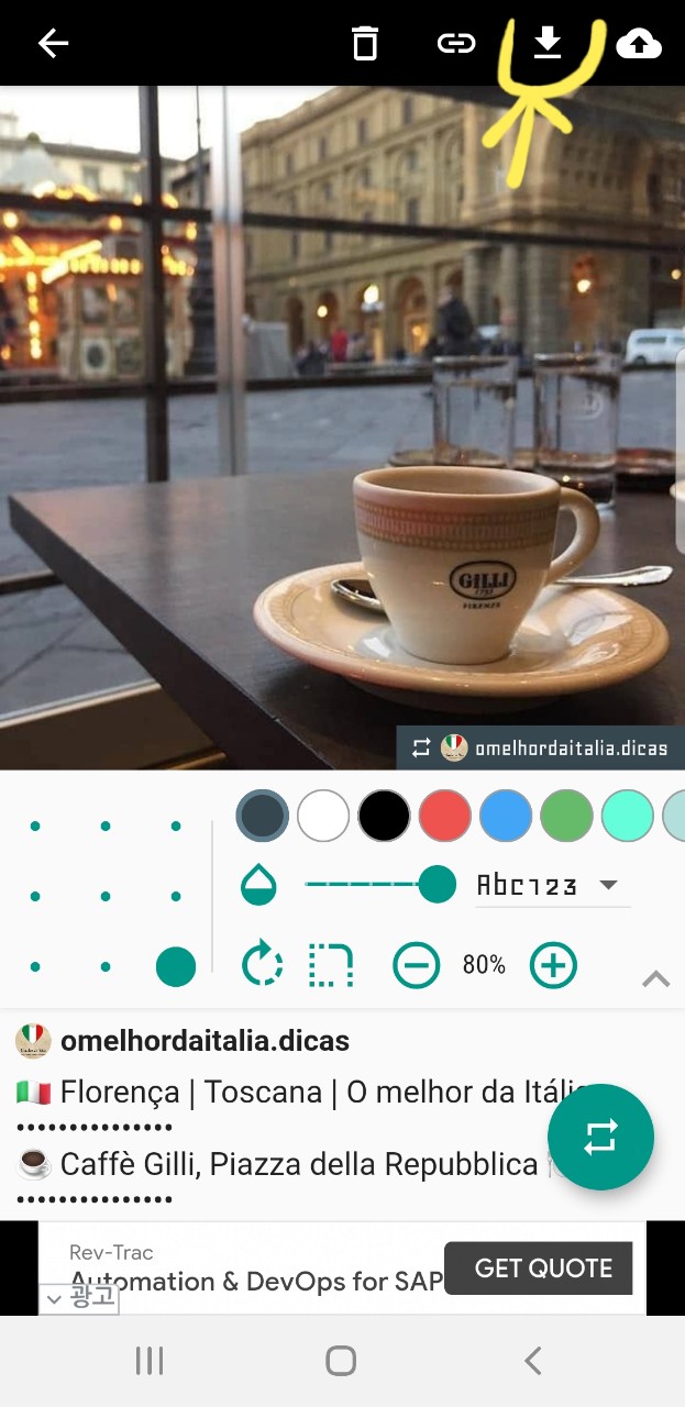 5) 복사된 글을 터치하면, 상세 화면이 뜹니다. 이때 우측 상단에 있는 다운로드 버튼을 누르면 글에 포함된 모든 사진과 동영상이 폰 갤러리로 저장됩니다.