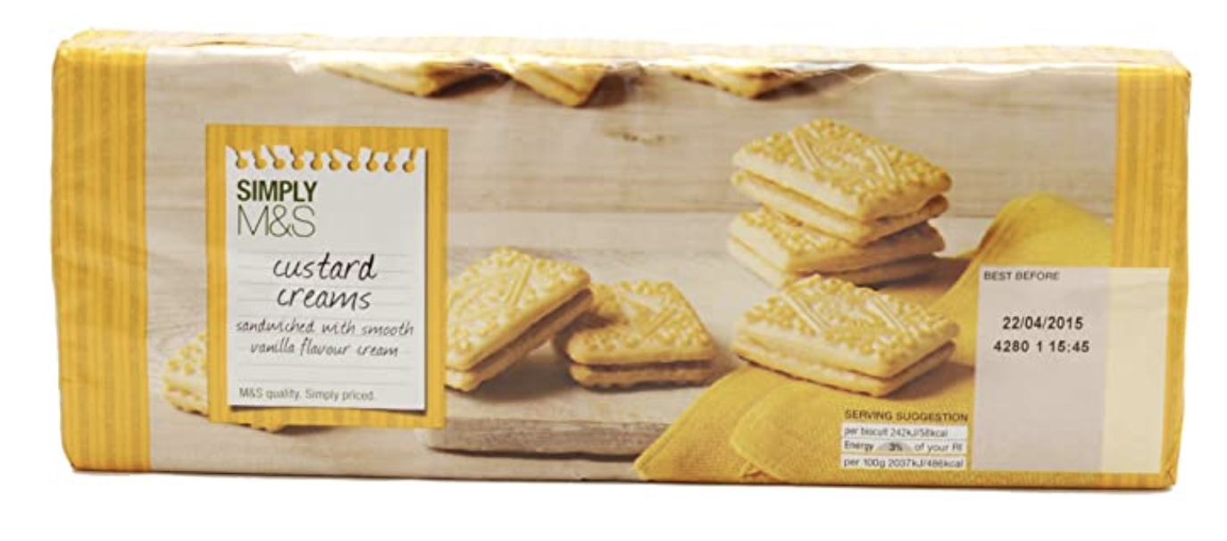 이건 어느 마트에나 판매하는 커스터드 크림 비스킷이에요. 영국의 전통 비스킷 중에 하나인데 친근한 맛이라서 종종 사먹는 답니다. 비스킷은 단단한 편이예요.